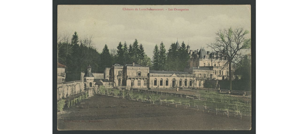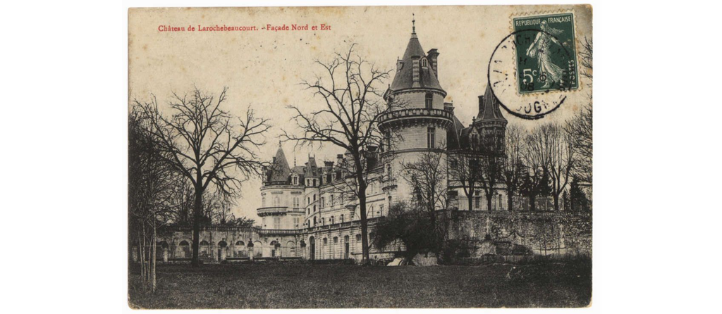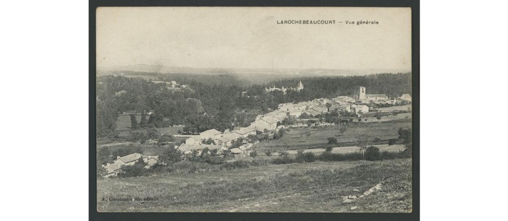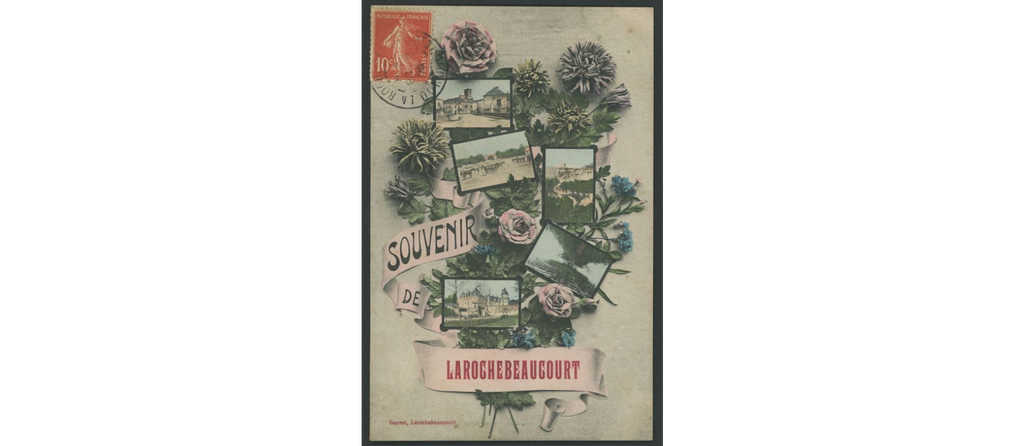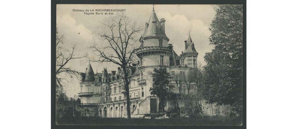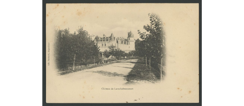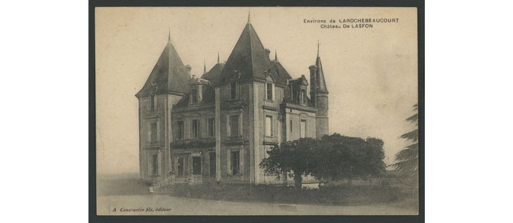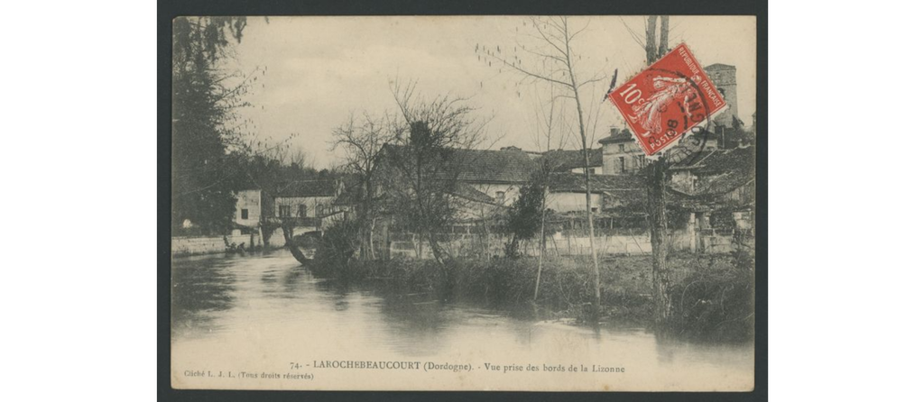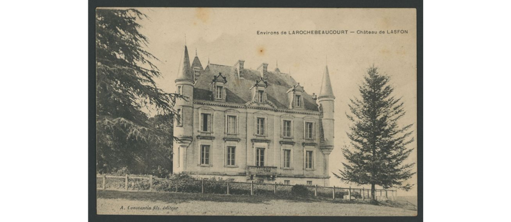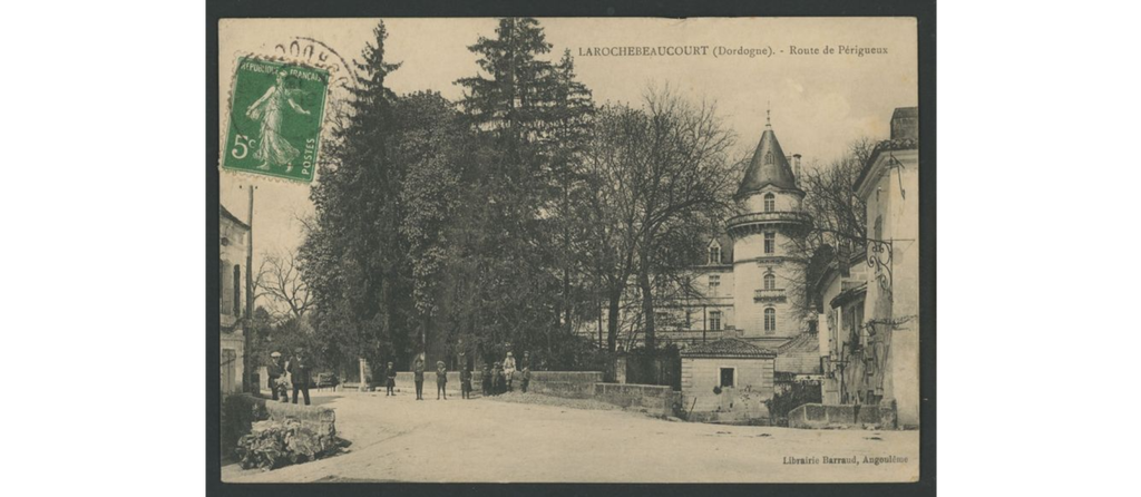 On y voit le château de La Rochebeaucourt, brûlé après la seconde guerre mondiale, le château de Lasfond, le château de Lasteyrie, la gare, les hôtels, les fermes dans les hameaux.